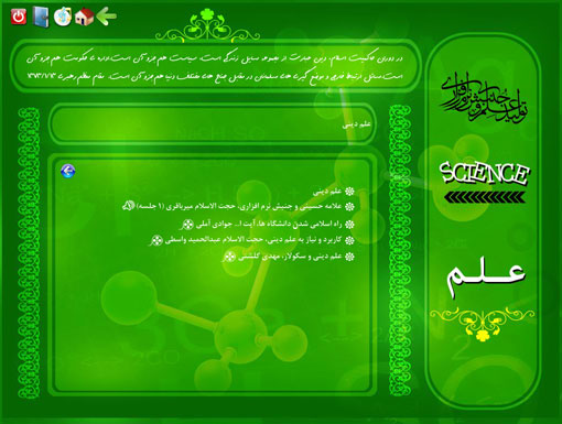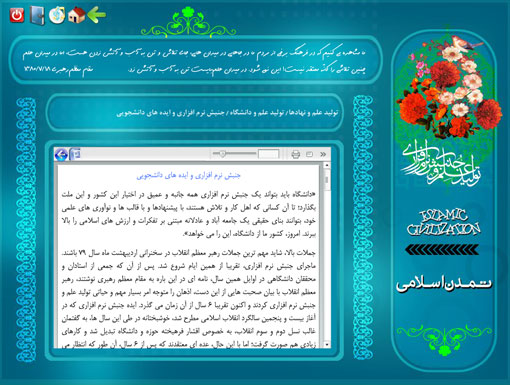 - بخش پنجم: نگارخانه (کتابخانه، اخبار جنبش، تصاویر، معرفی سایت، شهدای تولید علم)